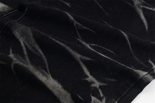 Kiss+United Spring Punk Men's Embroidered Rose Denim Trousers Mid Waist Casual