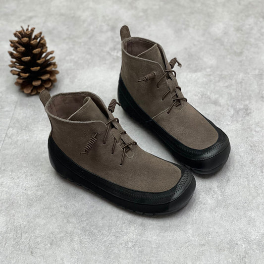 Kiss+United Round Head Soft Leather Soft Sole Color Collision Stitching Elastic Rope Ankle Boots