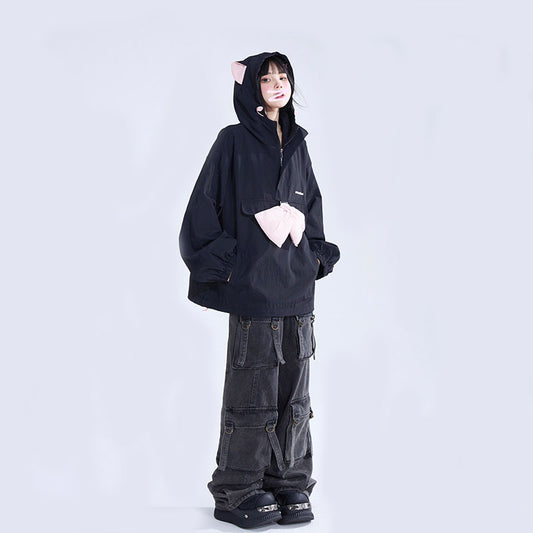 Kiss+United Washed And Worn Jeans For Women Multi-pocket Workwear